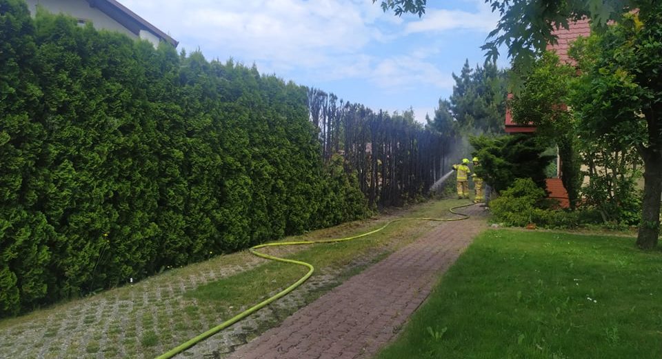 10.06.2021/ 11:12 / STASIN / pożar szpaleru tuj przy domu