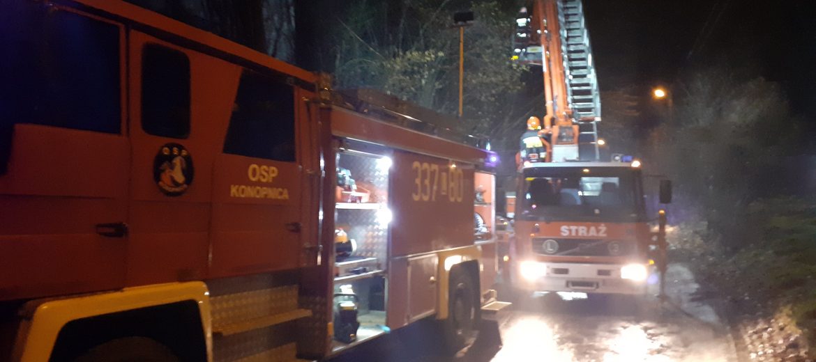 - 8.06 godz. 23.32 miejscowość: KONOPNICA zdarzenie: POWALONE NA JEZDNIĘ DRZEWO