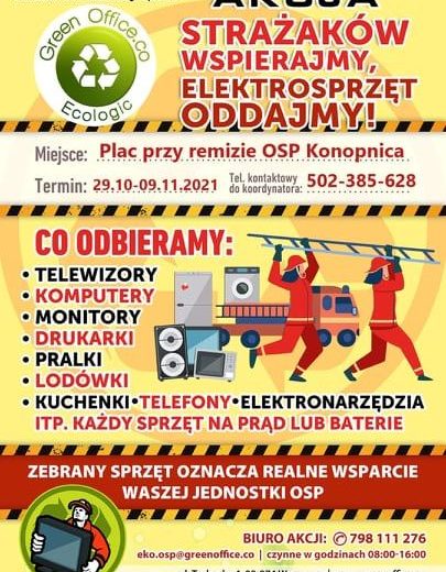 W dniach od 29.10 do 9.11 nasza jednostka Straży bierze udział w zbiórce zużytego elektrosprzętu. Zbiórkę prowadzimy na placu przy naszej remizie. Jeżeli ktoś posiada niepotrzebny sprzęt i chce się go pozbyć to prosimy o dostarczenie go na plac między remizą, a boiskiem do siatkówki. Im więcej sprzętu uda nam się zebrać tym większe wsparcie otrzyma nasza jednostka. Szczegóły dotyczące sprzętu jaki zbieramy znajdują się na załączonym plakacie.